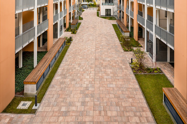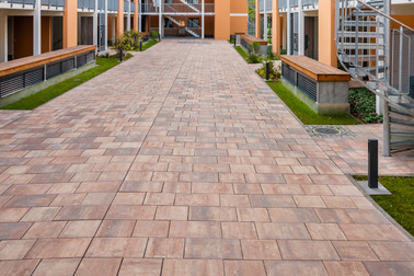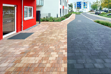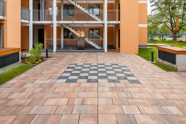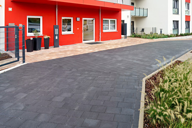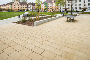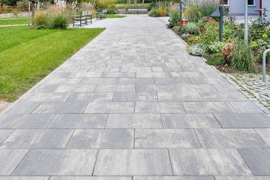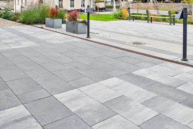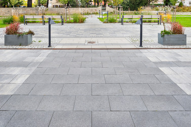 Diese großformatige Plattenbelege in robuster 10 cm-Stärke eignen sich ideal für weiträumige Flächengestaltungen mit hohem architektonischen Anspruch.