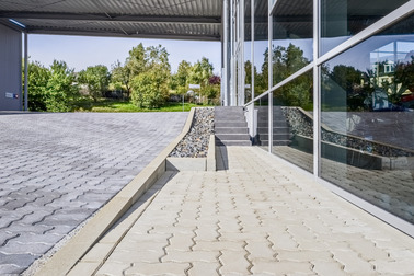 Bei ihm werden durch die optimale Rundumverzahnung horizontal wirkende Kräfte auf den gesamten Pflasterverband verteilt. Dadurch ist ein Verdrehen oder Kippen einzelner Steine kaum möglich und Punktlasten werden durch den gut verkeilten Verband großflächig abgetragen. Auch hier erhalten Sie passende Randsteine, so dass effektiv saubere Abschlüsse hergestellt werden können.