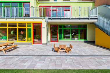 Es lässt sich mit moderner Architektur genauso kombinieren wie mit dem Baustil vergangener Zeiten. Durch die aufeinander abgestimmten Steinformate ergibt sich eine Vielzahl von Verlegemustern, deren Schlichtheit eine breite Anwendungspalette ermöglicht.