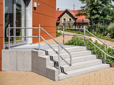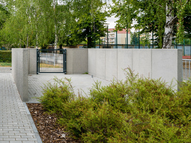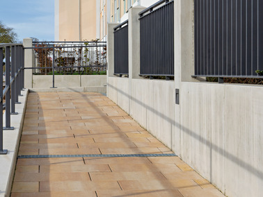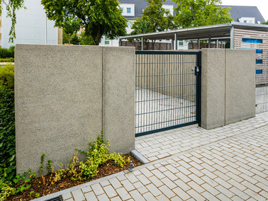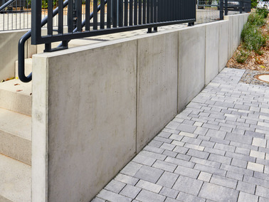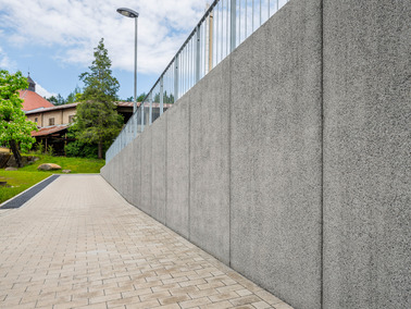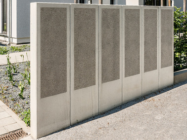 - Oberflächenausführung: Sichtbeton schalungsglatt; „Corunda“ gestrahlt